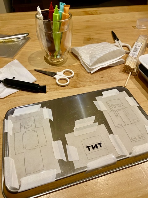 「マイクラのチョコもよろしく!」との息子の注文に、母夜なべしてがんばりました。