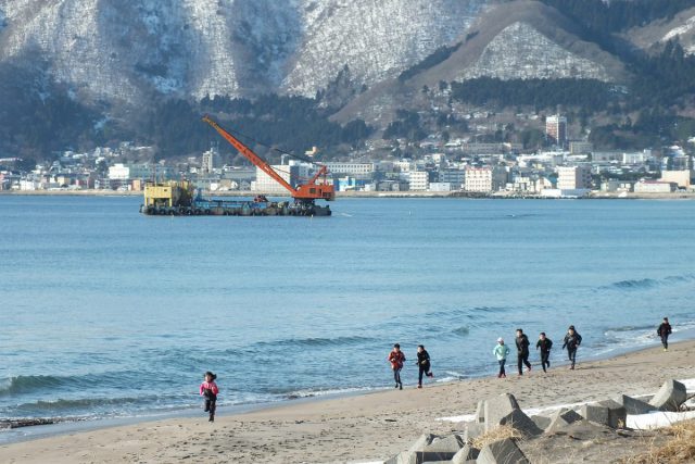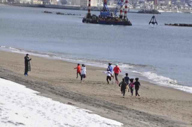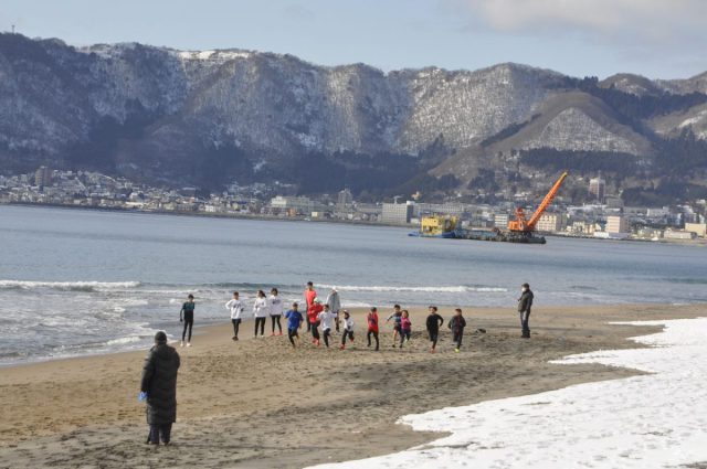 好天に恵まれた土日(22・23日)。孫娘(小3)が所属するCRS(函館千代台陸上スクール)長距離グループの練習場所は、啄木小公園下の大森浜。