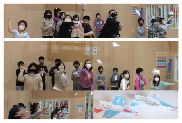 3月26日(土)に、講師役として今年度最後の亀田交流プラザ多世代交流事業「昔の遊び」を企画・実施。参加してくれた小学生は、1年生から5年生までの15名。今回の会場は天井が高くて程よい広さの体育室。まず最初の遊びは、紙飛行機とばしで飛行距離競争。