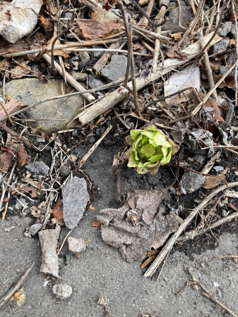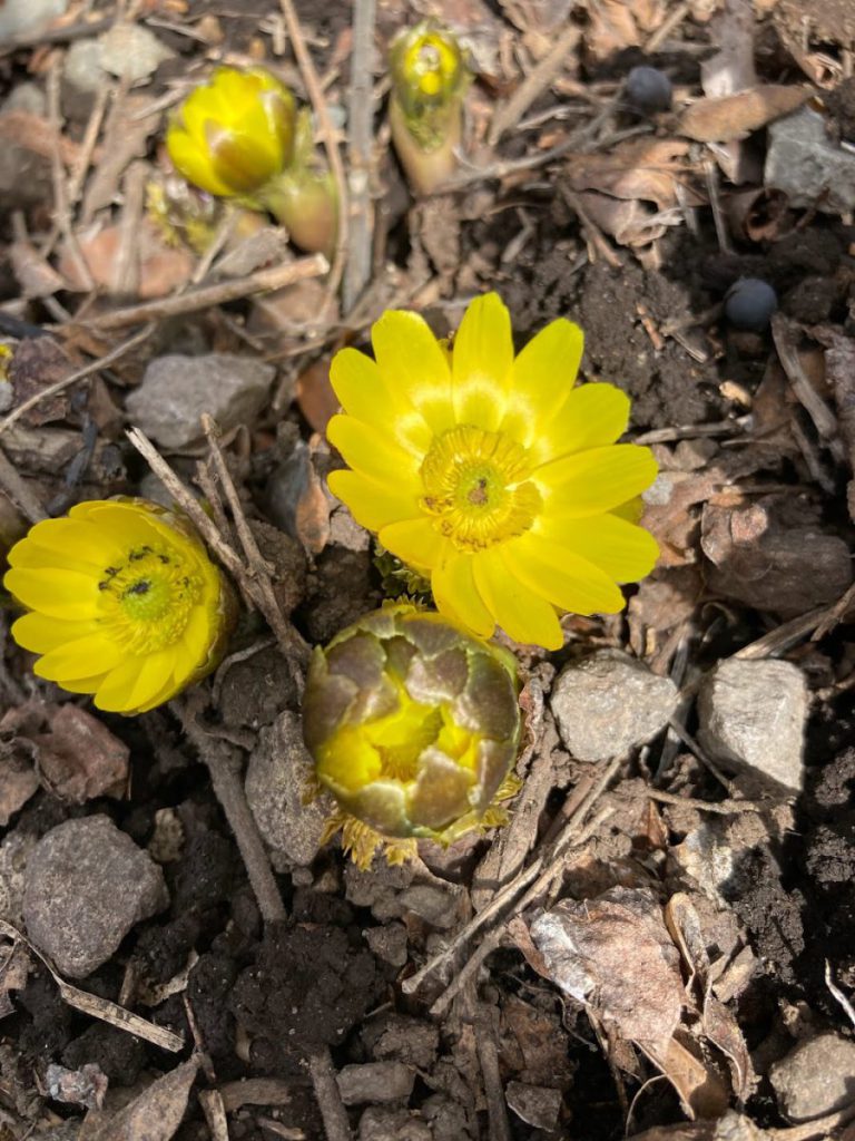 フクジュソウを見つけて「かわいい~」と、か細く高い声で言う息子。