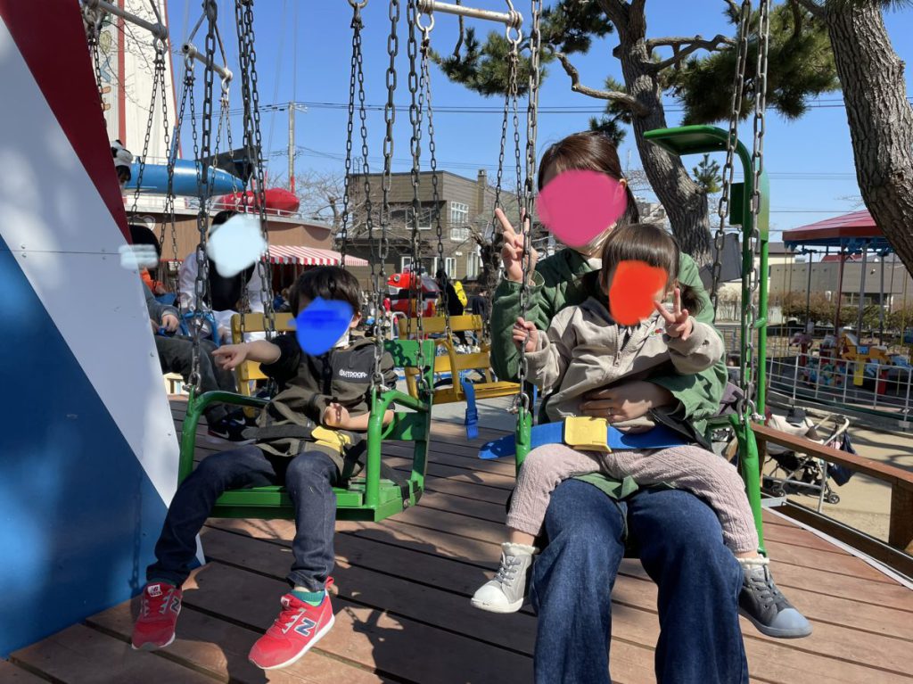 今回乗ったブランコのもの、乗ってる時に私が怖い…怖い…と言っていたら抱っこされてる下の子も怖い…怖い…と言い始めたので焦って