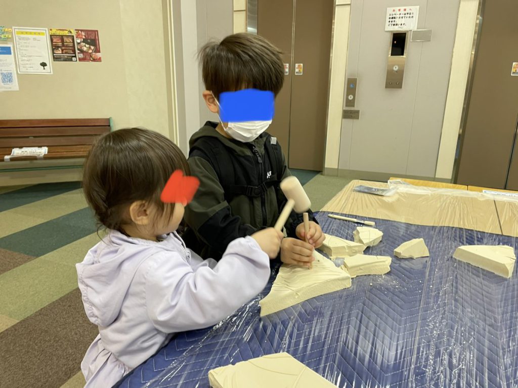 上の子すっっっっごく真剣な顔で金槌をトントントントン!