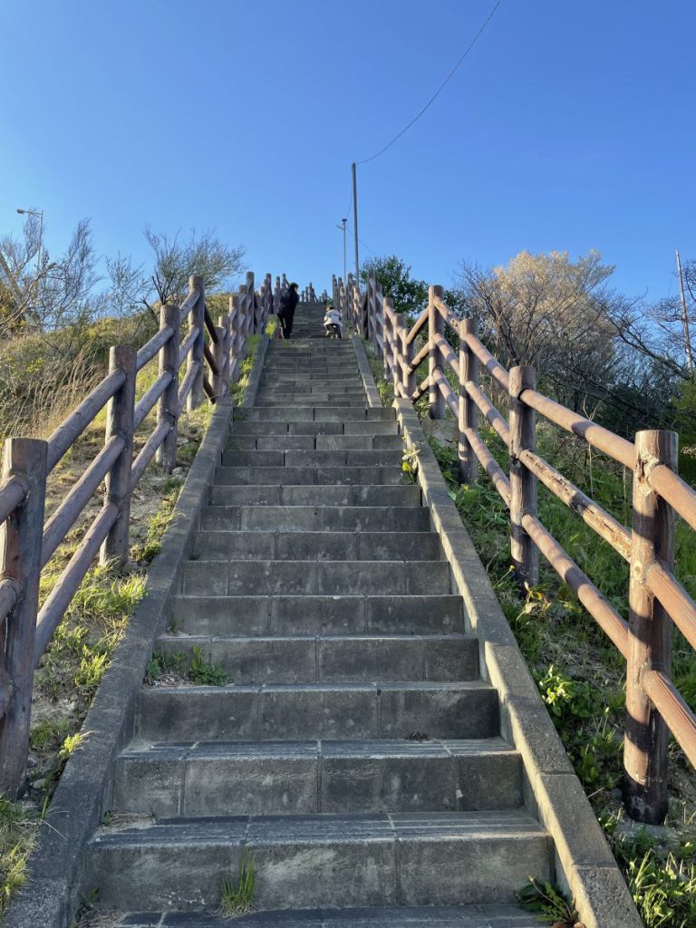 ↑室蘭に着いてすぐ、白鳥大橋を見ることができる展望台までの階段。