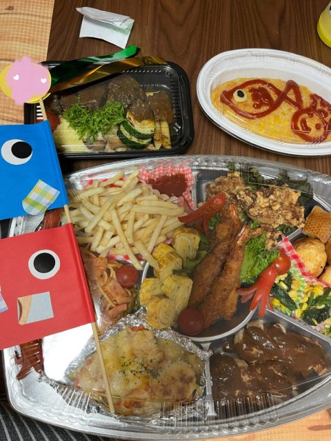こどもの日はオードブルを頼みました。鯉のぼりは幼稚園で作ってきました!!夫はお人形さんの歯磨きセットを買ってあげてました…