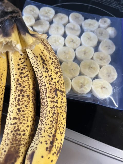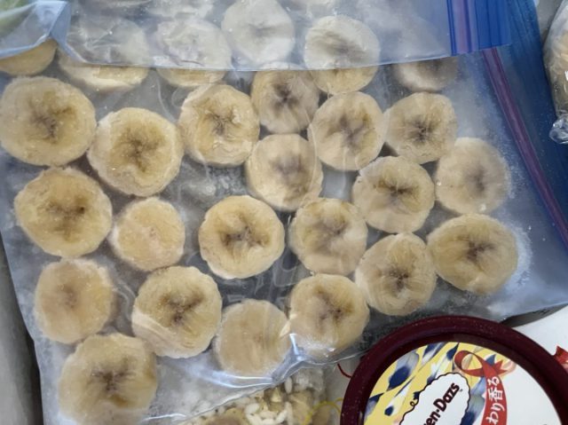 バナナを買う時は小さめで本数が多い物を選ぶため(娘にはまだ大きいのは…)食べ頃から食べると、最後はうれ熟れに(›´-`‹ )なので、冷凍にしちゃいます(^-^)