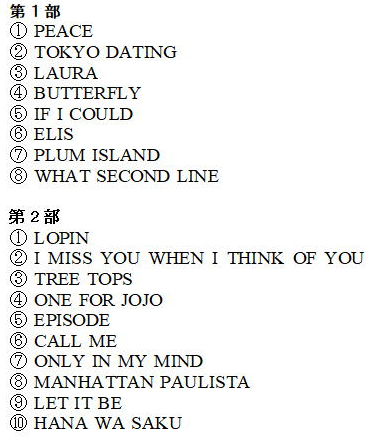 出演者: 渡辺貞夫(as) 林 正樹(p) 須川崇志(b) 竹村一哲(ds)