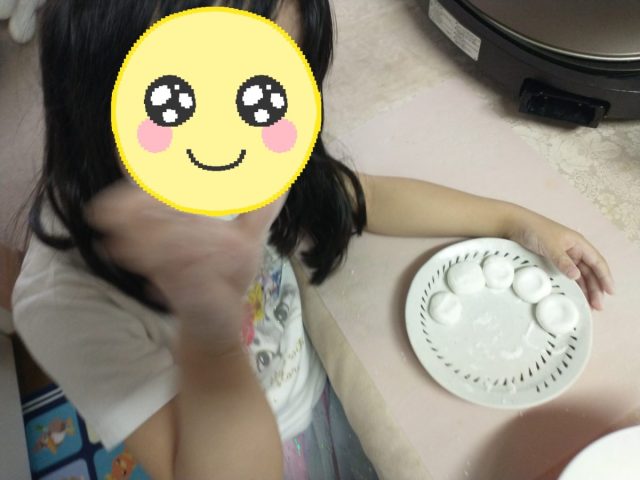 見た目は餅に若干かぶりますが、作り方がどっちかっていうとクッキーみたいに形作ったり、こねこねこねこねして作るので、料理というよりは工作ですね、と思いながらみてます。
