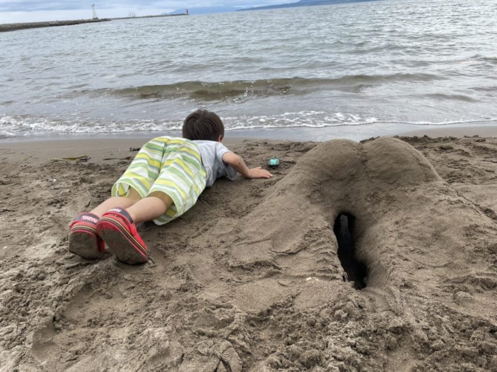 『パパとお尻山作ったっさ!』と。