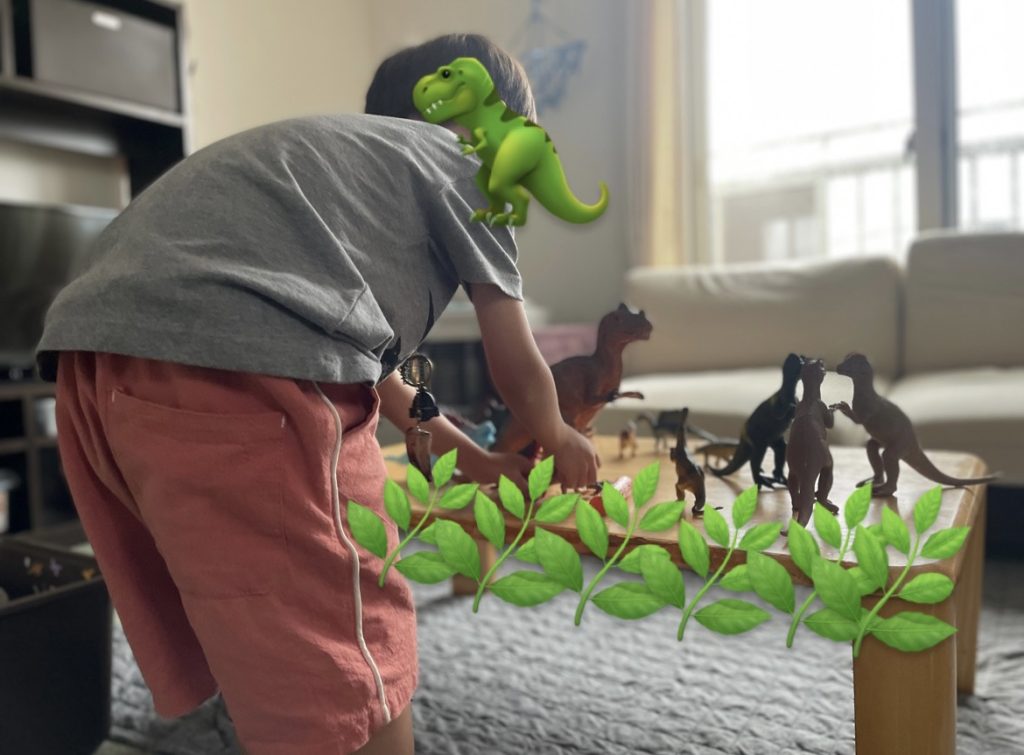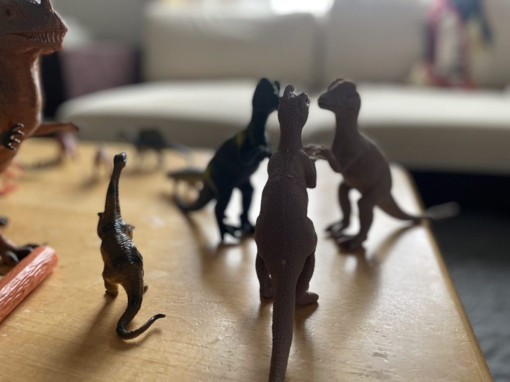 帰宅してからはさっそく購入した恐竜と、家にある恐竜を並べてジュラシックワールドごっこ!