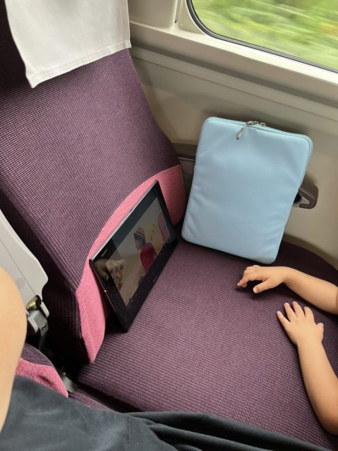 また飽きたら…タブレットに録画して残してたテレビを見せたり…JRだと走行音も大きいので、多少音が出ても気にならず!もう少し大きくなるとゲーム機かなぁ…