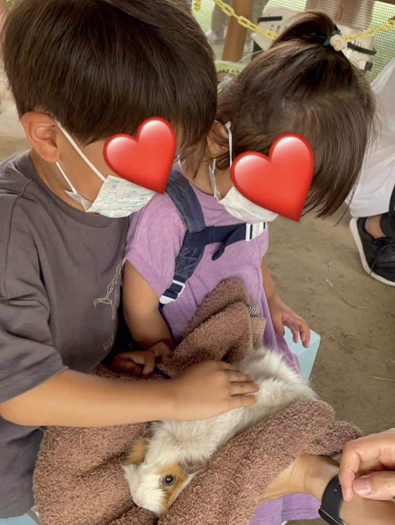 モルモット可愛すぎてきゅんきゅんだった兄妹、モルモット抱っこタイムに2回並びました♫