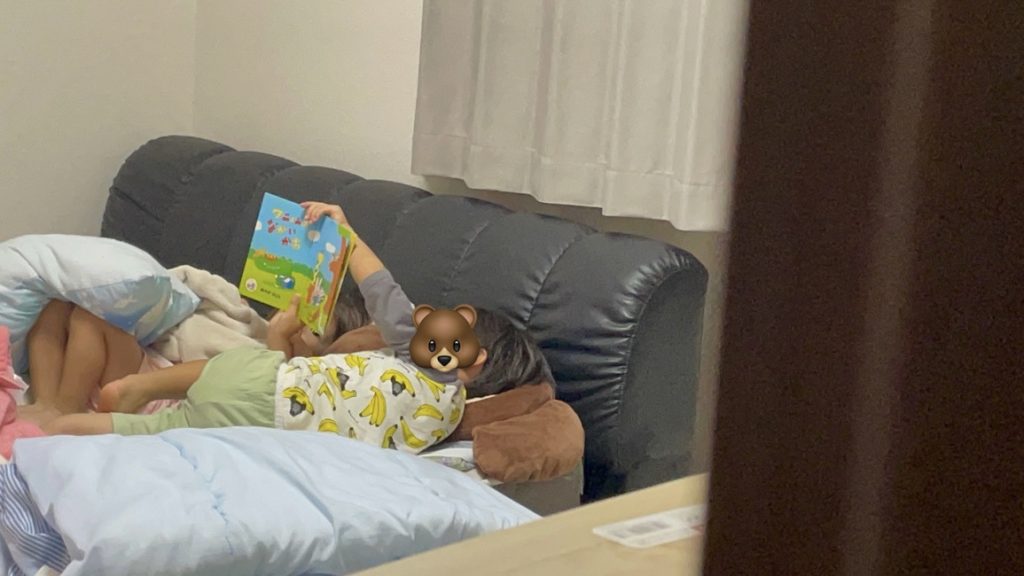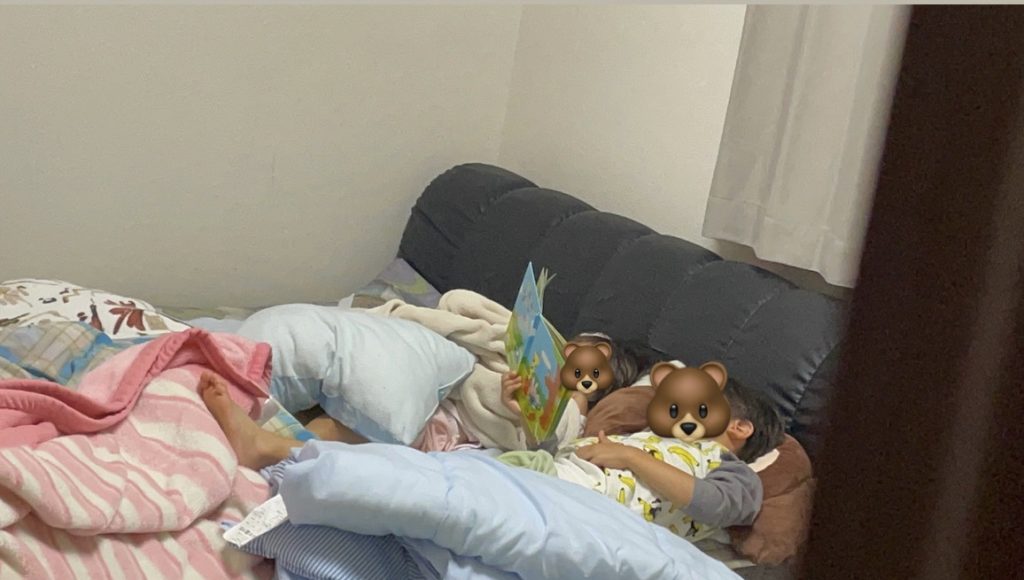 そんなある日、パパと子供たちが先にシャワーを済ませ、あとわ寝るだけ!しかし私がまだシャワーを浴びていない、そしてパパは絶賛寝落ち中という時がありました。