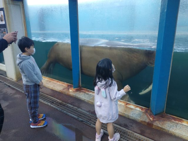 魚を見たアザラシ達が「早くくれ…俺にくれ」と水面をバシバシ叩きながら催促する姿に興奮し、キャーとか、うおっとか言いながら楽しそうにあげてました。