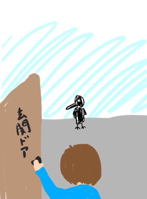 今朝、仕事に行こうと玄関を開けると、カラスが1羽まっすぐにこちらをみて2m程のところに。