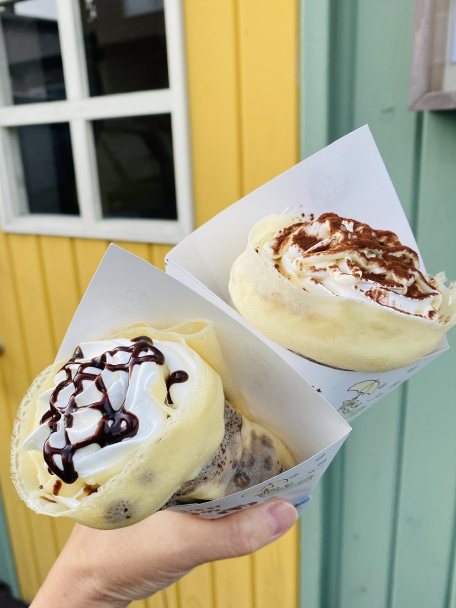 私はシンプルに、クレープ生地とクリームを食べたくて【純】にチョコをトッピング。