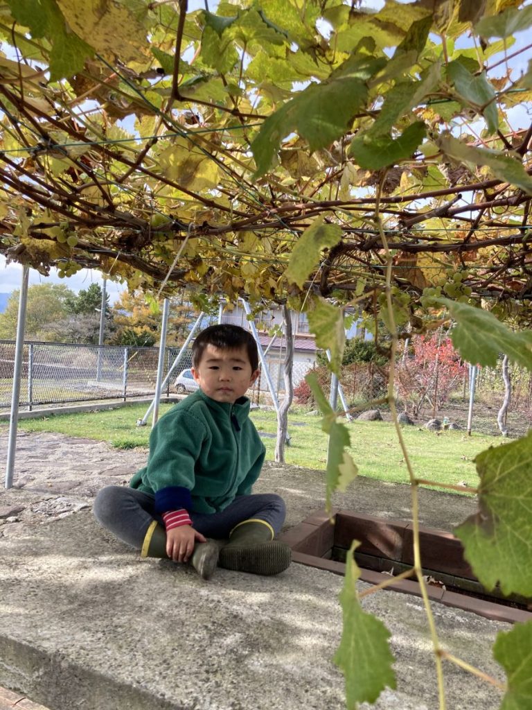 外で遊んでいてのどが乾いたら、ぷちっと採ったぶどうを食べます。
