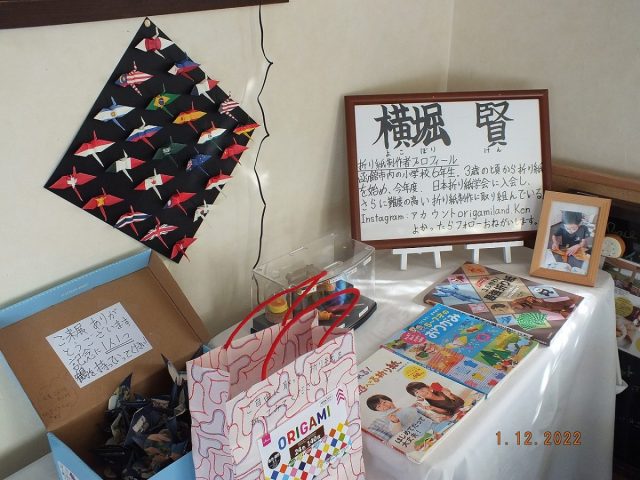 賢君が3歳からはじめた折り紙、これまで折り紙の本を20冊集め、約200種類以上作ったそうです。今回は、その中から出来栄えのいい作品を出展。