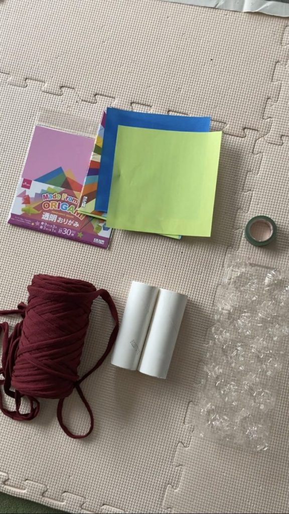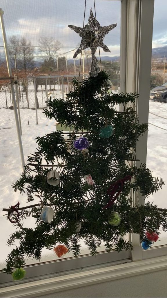 「買わないぞ!」と決心したので、飾りも家にあるもので手作りで!