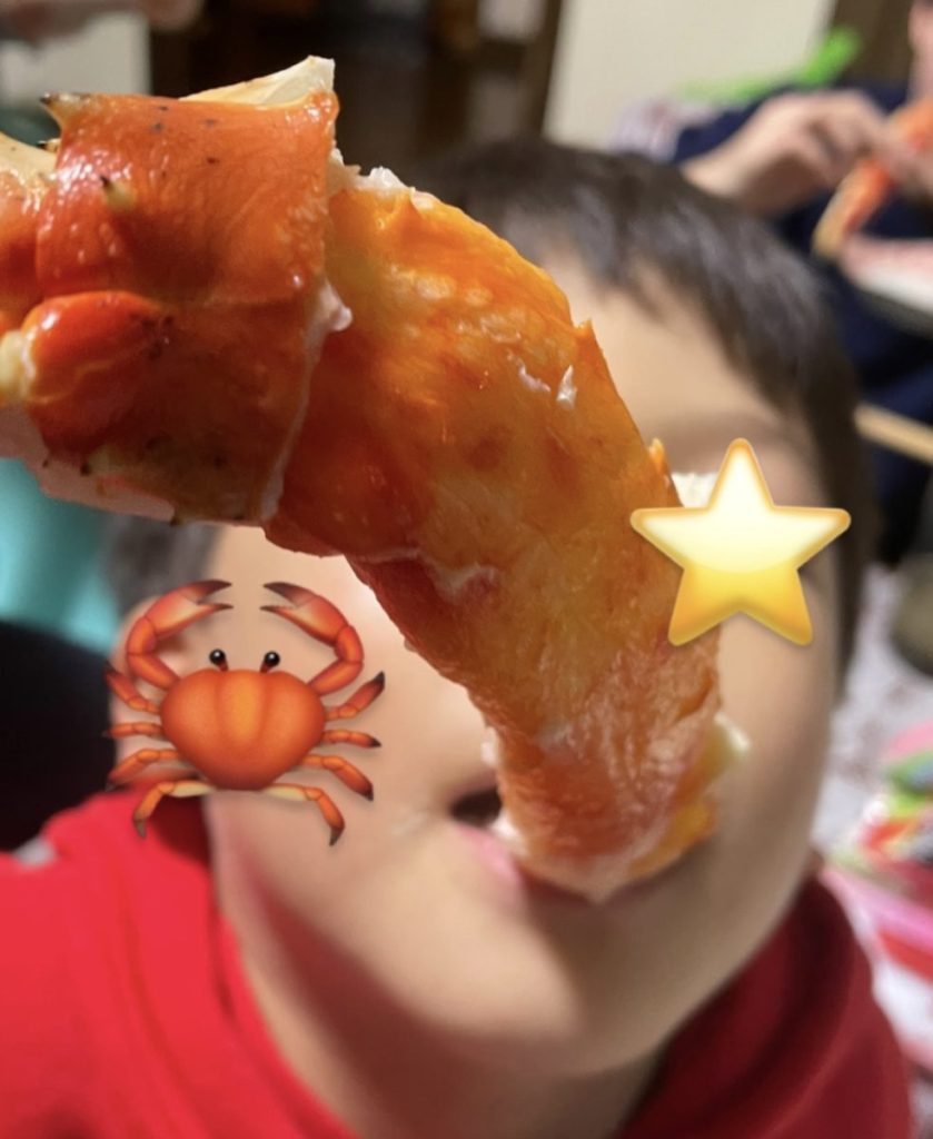 みんなで食べるご馳走は最高なようでカニに食らいついていた上の子。