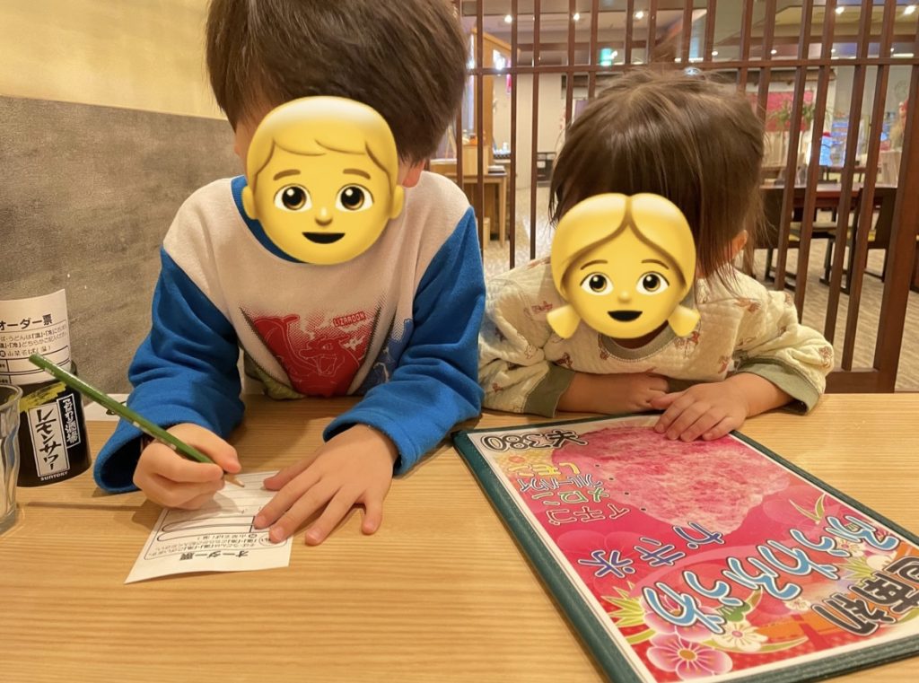 後ろの子どもたちは自分たちの注文がいつくるかな〜♫と待っている様子。