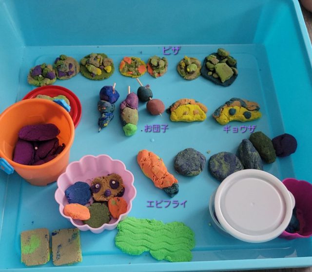 粘土も相変わらず好きで、それぞれ何か料理を作ってお店やさんごっこを開いています✨