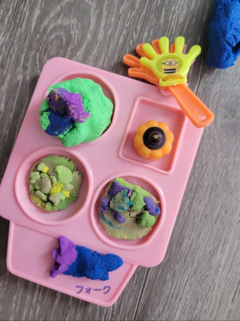 一方妹は、とにかくいろんな色を混ぜて、兄を見てマネしつつも、とりあえず量をたくさん作ってすぐにお店を開店します!笑