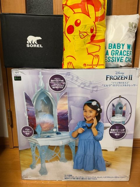 私達からは、ドレッサー。夫の両親からはお洋服。私の両親からは靴。私の友達からはポケモンのお弁当関係のセット