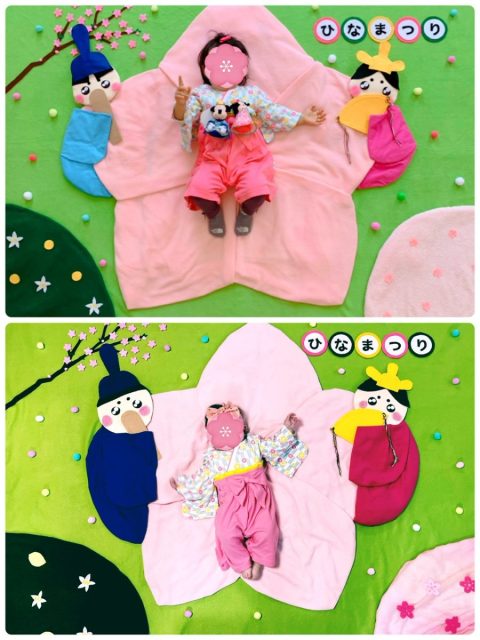 新しいアートではなく、あえて上の子がソロで撮ったアートと同じ物を作っていただきました!そして、出産祝いとかで頂いたオソロのお洋服で(≧▽≦)