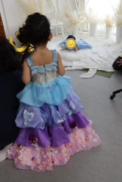 ヘアセットにメイク…プリンセスになってました。姉が着たい物に合わせて妹が決まる…仕方ないですね(´ε`;)