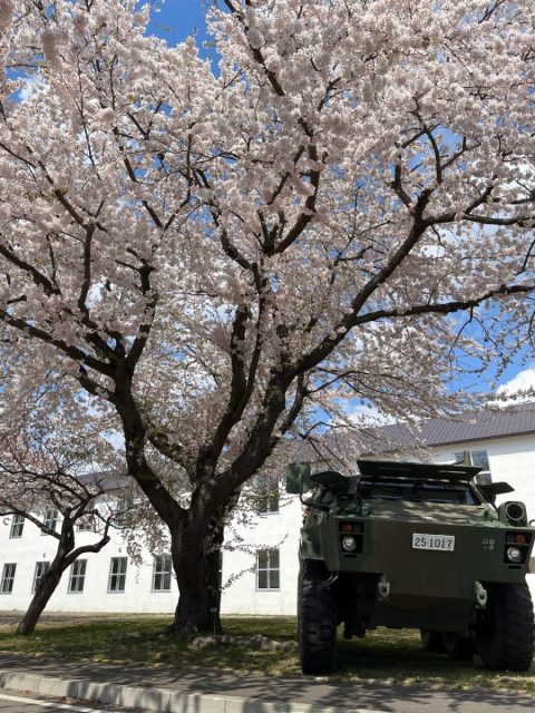 数時間だけ解放した日があり…車で来る人、お散歩に三輪車を押して来た人。静かにゆったり見れました!ただ、大々的なイベントじゃなかったので、正門から入るのですが…銃を持った隊員さんが走ってくる時はちょっと怖かったのは内緒( ´艸`)広報の隊員さんが所々にいらっしゃり、夫と交代に子供達と一緒に写真を撮ってたら「撮りますよ!」と!桜で家族写真が撮れて大満足でした!