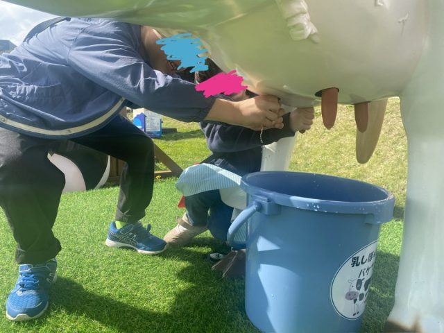 本物の牛さんでは怖いけど、これなら大丈夫!と自分のお財布から50円入れていました。