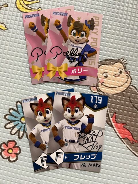 写真を撮ったら、サインカードをもらいました!可愛い〜(≧▽≦)長女はポリーちゃんと会いたい!と言っていたので満足。次女は二人に抱っこしてもらい、撮影。ファイターズガールのお姉さんともパシャリ!