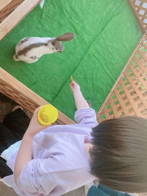 外では動物のふれあいコーナーがあって、なんとか子どもたちの気を紛らわせることに成功。