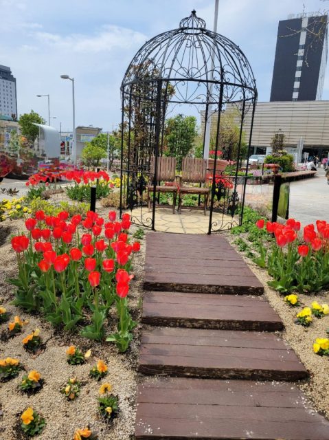 函館駅の駐車場は30分無料なのでそこに停めて、さぁ駅に!と車を降りたら、たくさんの花が😍