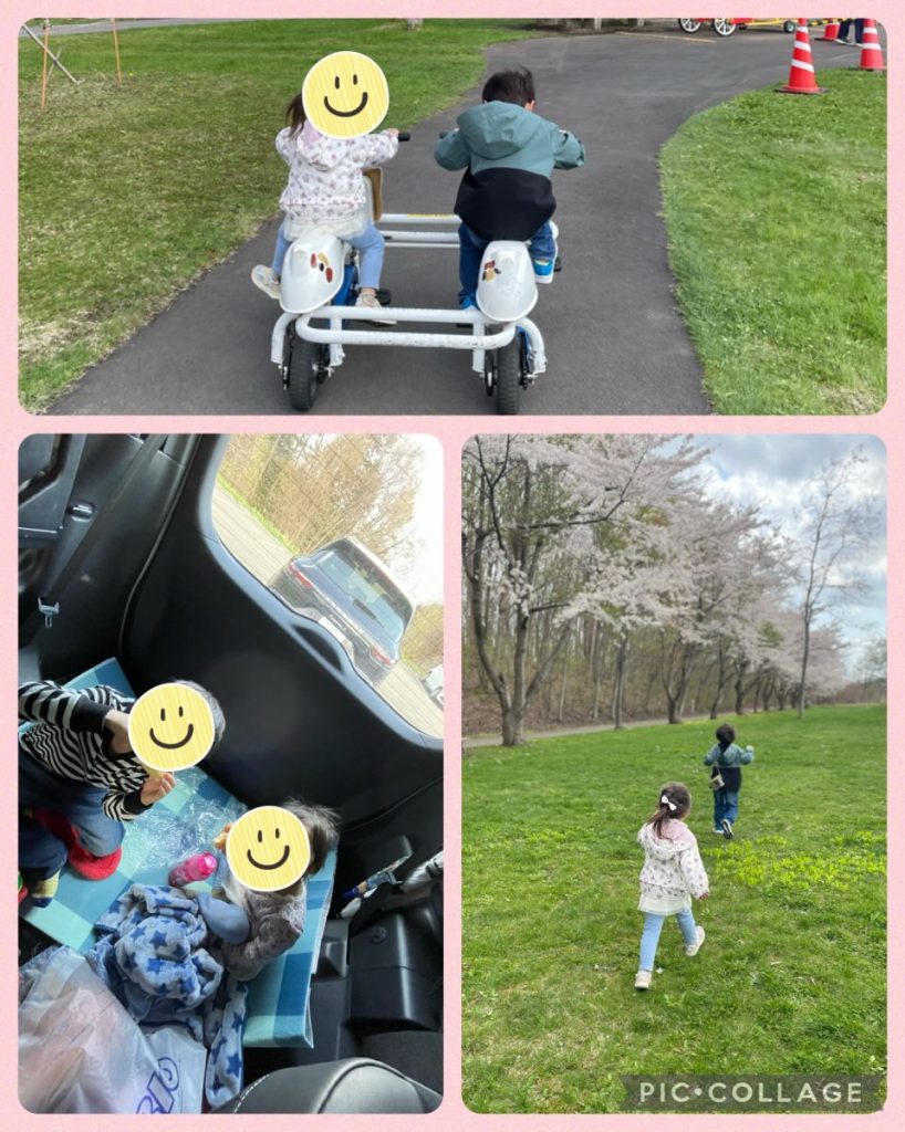 車の後ろにシートを敷いてパンを食べただけなんですが、子供たちワクワクしていました‼︎秘密基地感が嬉しいみたい‼︎