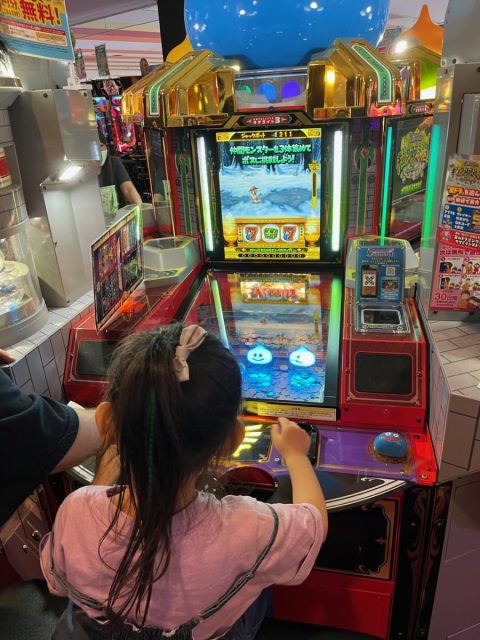そして、メダルゲームとUFOキャッチャーの無料体験チケットをもらったので、初メダルゲーム!UFOキャッチャーはまさかのゲットも!