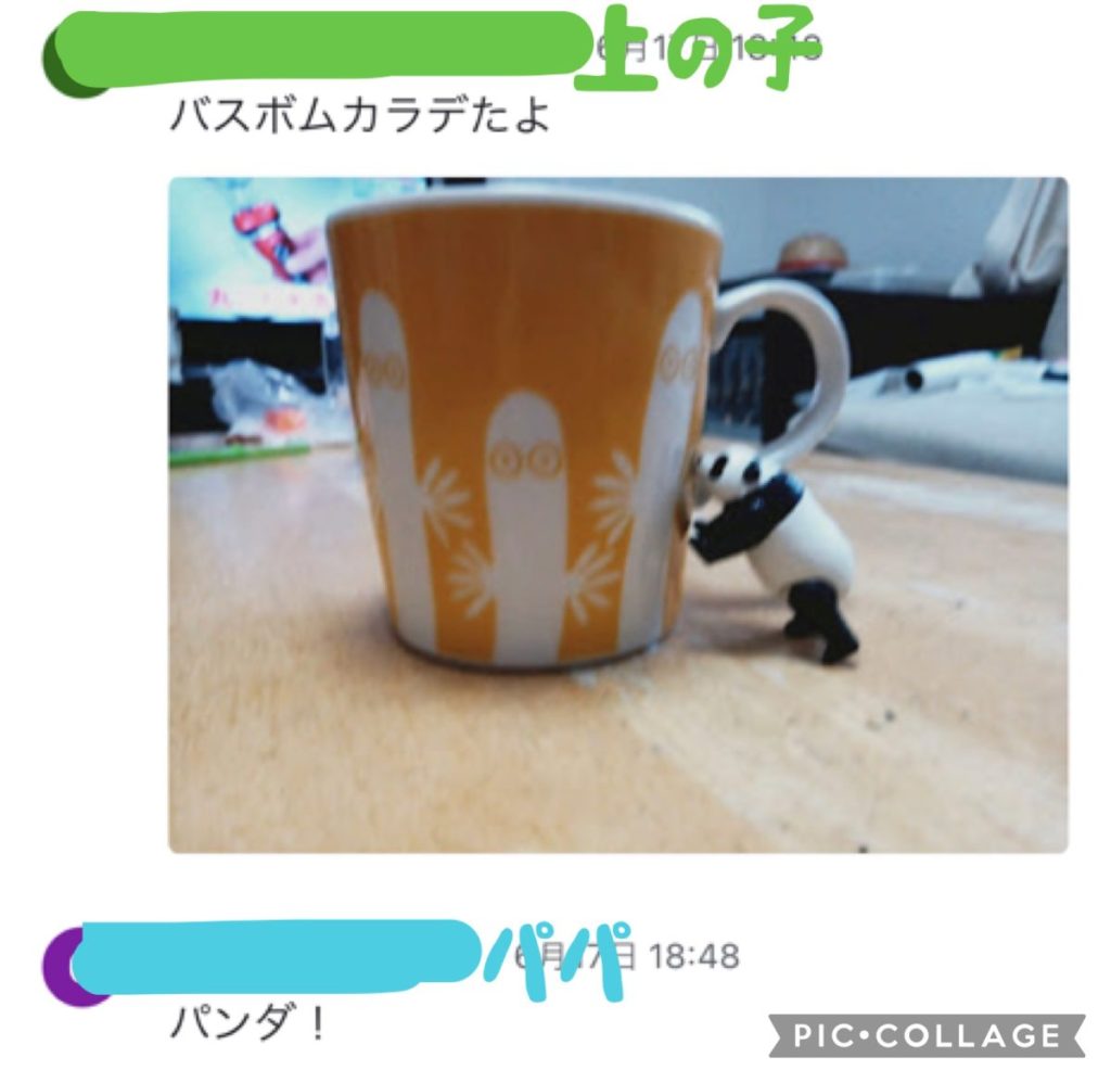 どういう会話かというと…中にオモチャが入っているバスボムを購入し、そのバスボムからパンダが出てきたのを報告している写真です。