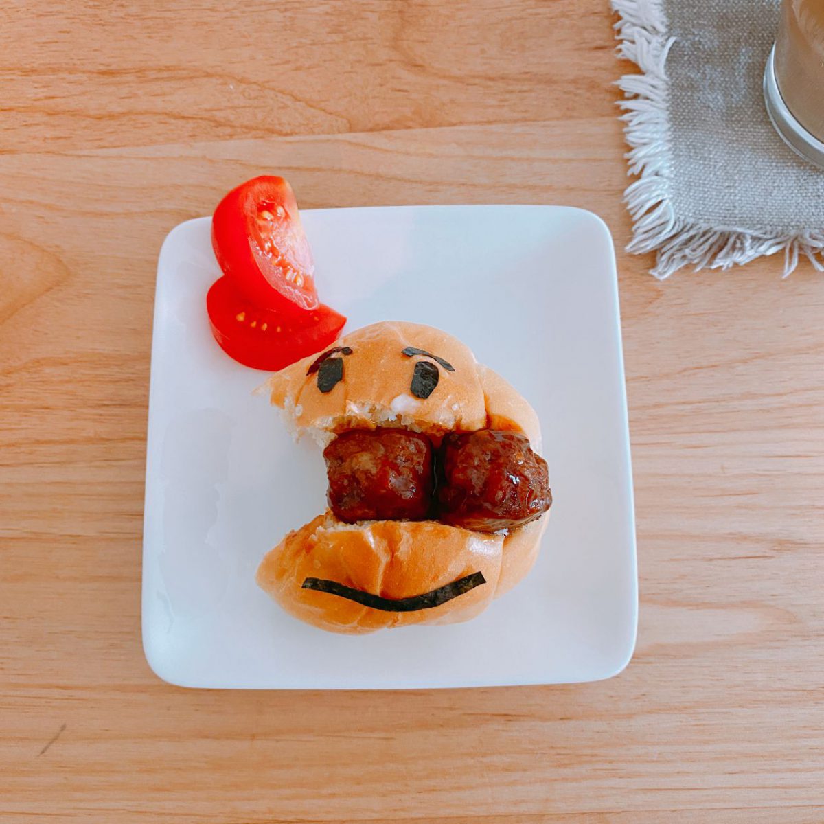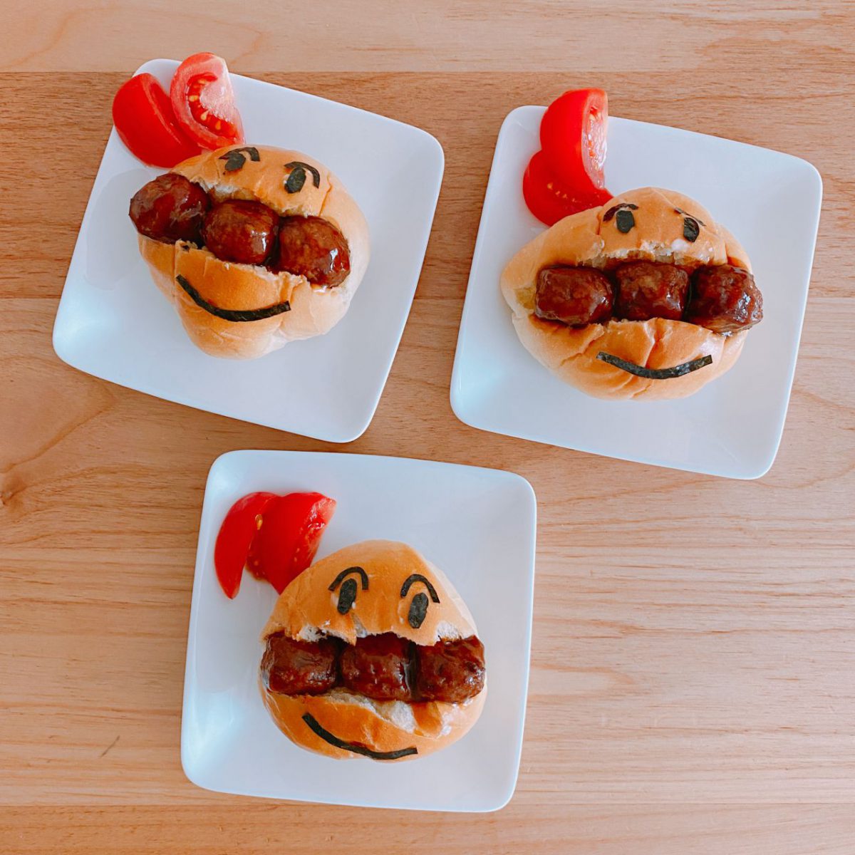 ロールパンにミートボールを3つ挟むと、あら不思議!みんな大好きアンパンマン♡