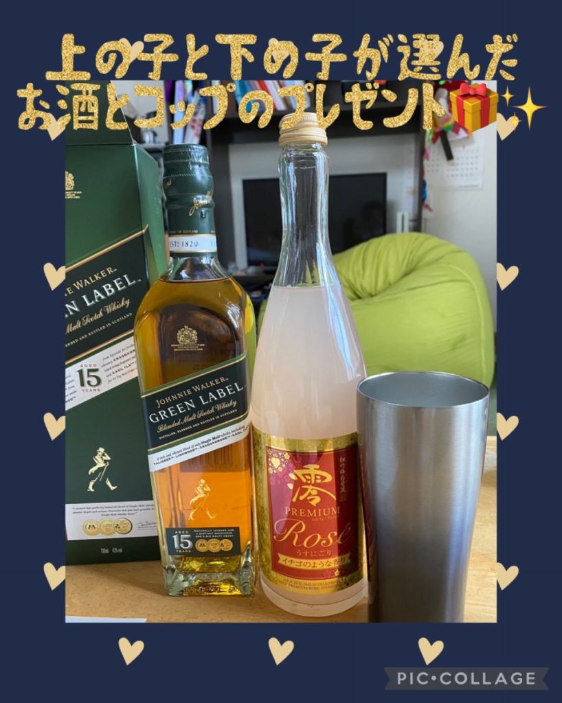 ウイスキー、コップのプレゼントは上の子が選んでくれて、日本酒は下の子が選んでくれました^^