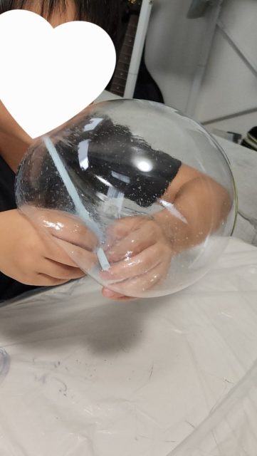 なかなか膨らまず諦めかけていたので、「ストロー使ってみたら?」と提案すると、上手な子はすぐに「できたぁー!」なかなか出来ない子は試行錯誤して頑張っていました✨