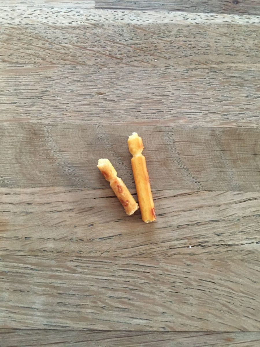 ポッキーのチョコ無し部分で作られたミニこけし。折らないよう慎重に歯で削っていく繊細な作業。こけし好きの母を想って一体一体心を込めて作ってくれたそうです。泣いていいですか( ノД`)シクシク…