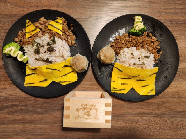 最後にハサミを使ってそれぞれ自分の食べる鬼の目や口を切ってもらっている間に私が鬼の角とパンツをカット🔪そこで気づいたのですが、玉子に味付けするのを忘れてたー🤣必ず何かやらかす私と娘…(とゆうかまだ未就学児の子どもに任せる私のミス😂)