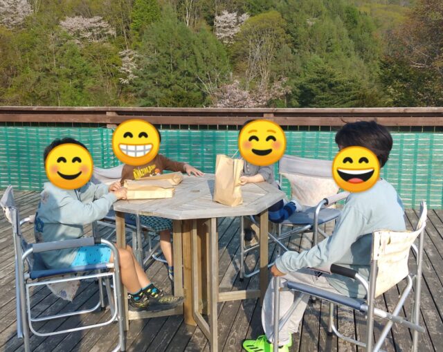 迷路の前には、広いスペースもあり、椅子テーブルも用意されており、買った駄菓子を食べながら休憩。