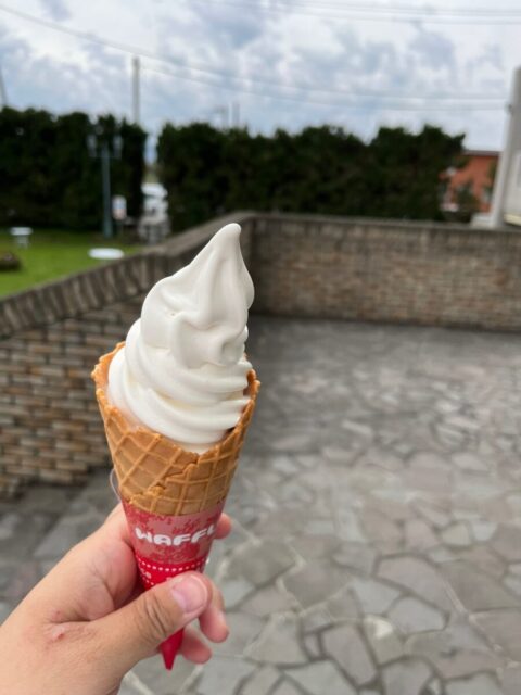 製造が追いつかないのかちょっとゆるめのソフトクリームでした。