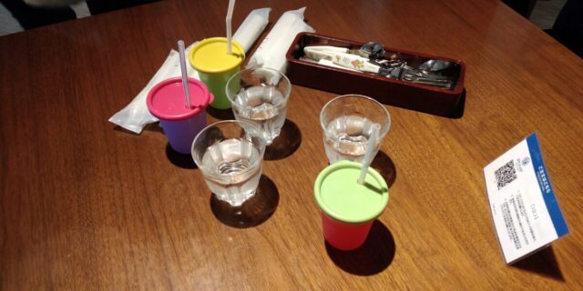 またまた有り難い、子どもには、蓋付きストロー付きのコップです。倒れてあたふたしなくてすみます。ありがたや〜