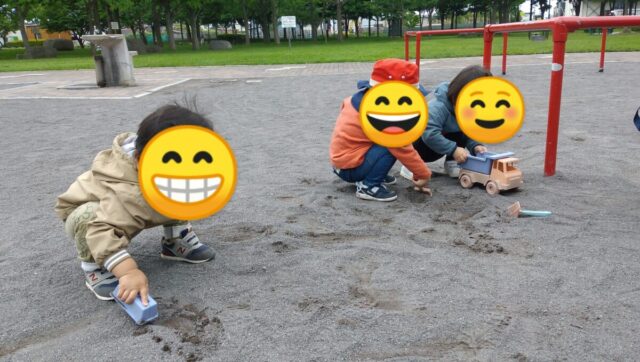 気を取り直して…公園で元気に遊びました(^o^) 子ども達は、朝が早くても元気です☆ 皆で協力してトラックに砂を乗せたり、滑り台エンドレス。