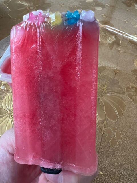 出来上がりはこんな感じ♪味は市販のスイカバーとほぼ同じ!