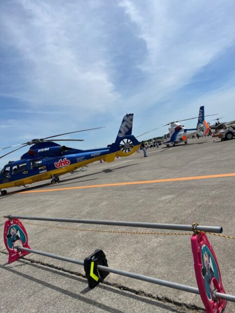 報道ヘリもたくさん展示されていました。次女は大好きなonちゃんがいって大はしゃぎ。