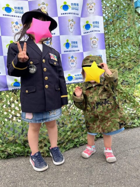 そして!!!!次女もついに制服デビュー!!私がずっと着せたかった迷彩服!!長女は制服ばっかりを選んでたので、迷彩服を…と思ってたのが、次女により叶えてもらいました!女性隊員さんも「かわいい」を連呼してくれました。