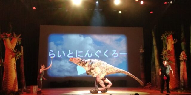 クイズがあったり「恐竜にエサをあげたいお友達ー!!」「恐竜の口の中に入ってみたい子ー!!」などなど、何度も観客の子ども達を舞台にあげる、超ー観客参加型のショーだったので、観に来ていた子ども達は、とても楽しんでいる様子でした。長男も、ショーの中で練習した恐竜の鳴き声を帰ってからも、何度もしていましたよ〜☆